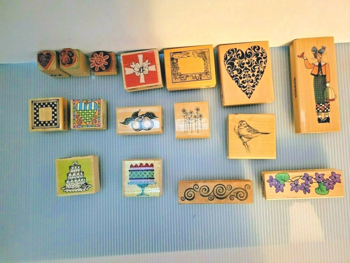 Lot Of 18 Wooden Rubber Stamps Different Brands Ebay