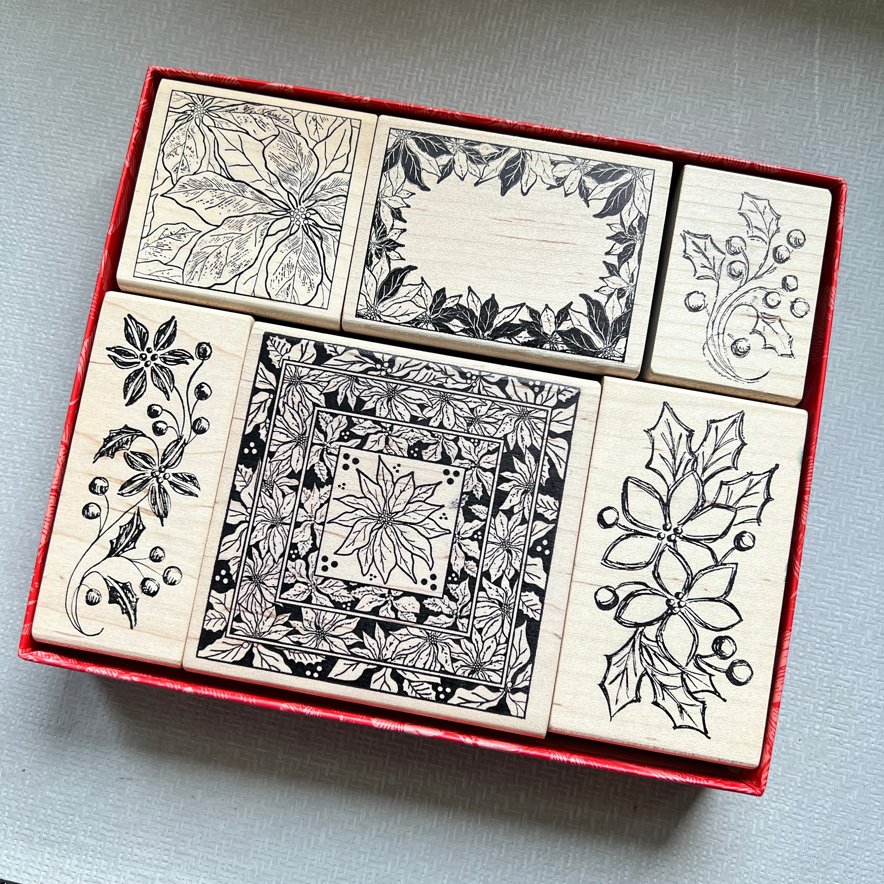Vintage Nature Poinsettia Holly Berry Holiday Rubber Stamp Set Etsy Uk